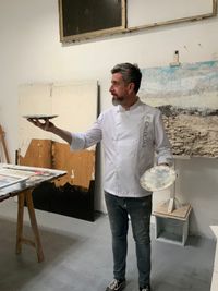 desde hace dos años realizo obras de pintura y collage con elementos de la cocina, mi obra "en la cocina" del año 2025 que se encuentra en el Basque Culinari de San Sebastián, una obra realizada con chaquetas de cocina, delantales, pantalones y pintura, mi proyecto actual es preparar una exposición de arte y gastronomía, aunque buscando espacio para poder exponer